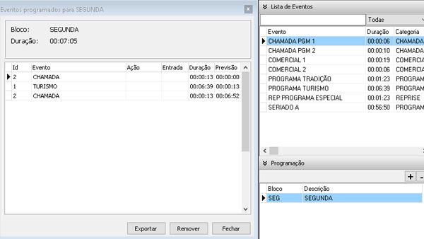 Conectividade para administrar o BSVideo Pro 2, você pode criar e salvar blocos de programação que podem ser importados no Playlist de forma fácil, rápida e eficiente.